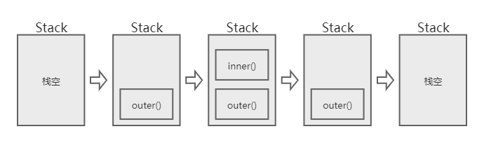 outer调用时,第一个帧被创建并压入栈中,帧中包含了outer的参数和局部变量。 - 当